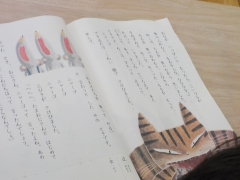 国語の時間、「ニャーゴ」という物語文を学習していました。音読をしていて、どのように読むといいのか考えながら読んでいました。
