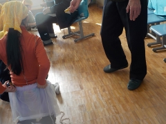 常磐地区社会福祉協議会の方にお越しいただき、昔の遊びを教えていただきました。竹馬、けん玉、お手玉、あやとり、コマ回しの5つの遊びをそれぞれ体験させていただきました。