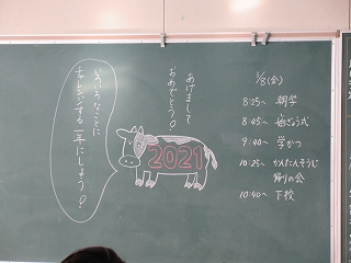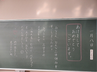 教室の黒板には、先生からのメッセージ。