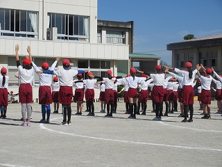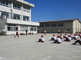 運動場では、自然教室を終えた5年生が運動会練習に入っています。
