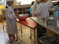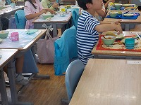 1年生の子どもたちもおいしくいただいたようで、お代わりの列ができていました。1年生も給食に慣れ、当番でもできることが多くなってきたようです。