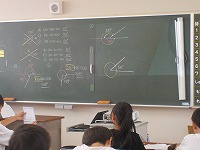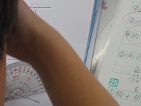 算数の時間、180度よりも大きい角度の測り方について考えました。分度器をどこに置き、どこの角度を測るのか考えていました。180度の線を引き、180度よりも大きい角度を足す方法、360度から残りの角度を引く方法など子どもたちは様々な方法を考え、計算しやすい方法で角度を求めていました。