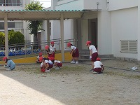 子どもたちは、嬉しそうに土を落として袋に入れてくれていました。学校がきれいになりうれしく思います。