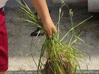 運動場の隅のほうには頑固な草がたくさん生えていて、子どもたちも苦労していました。先生がスコップで掘り持ち上げると大きな草が抜けました。