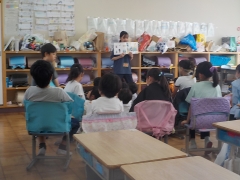 教育実習生も最終週となりました。国語の時間絵本の読み聞かせをして、絵本の世界を想像しながら子どもたちに考えを発表させていました。
