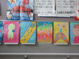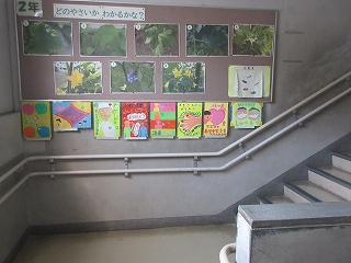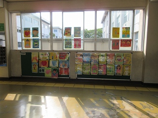 階段壁面や児童玄関壁面には、たくさんのポスターが張り出されています。