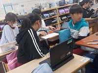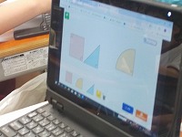 正方形の面積から扇形の面積を引き求めるなど、タブレットで図形を動かして考えをまとめていました。友達の考えを聞き、深められる子も多く、友達に自分の考えを聴いてもらえる安心感が授業での話し合いを活発にしていました。