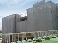 南校舎改修工事に向けて、週末職員室前付近も足場が組まれ、足場のため、校舎内部が暗い状況となりました。