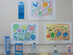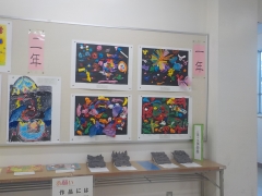 授業参観に合わせて昇降口に展示されています。保護者の皆さんも、子どもたちのがんばって作品を見ていただくことができたと思います。
