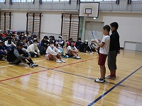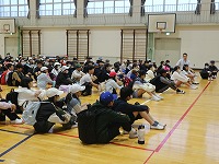 雨のため、出発式は体育館で行いました。子どもたちも目を輝かせていました。