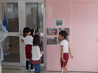4限目に2年生と1年生が学校探検で給食室前の写真を見てびっくりしていました。給食がいつも大きな鍋で作られていることをびっくりしていました。