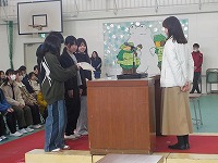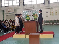 明日の卒業式に向けて最終確認を行いました。そのあと、子どもたちから音楽専科、教頭、校長が感謝状をいただきました。