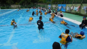 今日は海上保安庁の方に来ていただき、6年生を対象に着衣水泳の授業を行っていただきました。服を着て泳いだり、ペットボトルを使って浮いだりするなど体験を交えながら、おぼれてしまった時にはどのように行動すればいいのか教えていただきました。命を守るために、今日の授業のことをずっと覚えておくことが、いざという時の備えになると思いました。