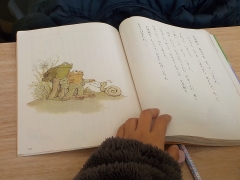 国語の時間、「お手紙」の物語を学習しています。登場人物のお手紙を待つ気持ちを考えながら読み進めることができました。