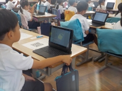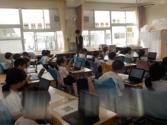 第5次四日市市教育ビジョン改訂に向けて、小・中学校の児童生徒にアンケート依頼が届いています。1年生の教室で担任が読みながらタブレットで回答している姿が見られました。子どもたちの意見も受けて、四日市市の教育ビジョンがよりよくなっていくことを願っています。