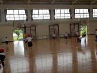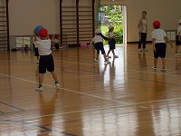体育の時間、ボールを使って運動しました。2人組になってボールを投げ合い、キャッチしていました。ボールの受けたり、投げたりすることが続くように相手の胸をめがけて投げていました。