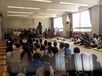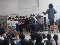音楽の時間、2年生と3年生が合同で行い、それぞれ学習してきたことを発表しました。3年生はリコーダーで「パフ」を演奏しました。2年生にとって4月から3年生。リコーダーの演奏も始まります。