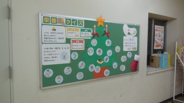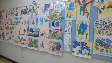 児童玄関横掲示板ですが、4年生の「絵の具で夢もよう」を掲示しています。絵の具を用いて、ブラッシングやにじみ、吹き流しなどの技法を使い、お話の絵を描きました。2クラス分の作品を掲示しています。また反対側掲示板には栄養教諭による「栄養三色クイズ」も掲示されています。来校された際にはぜひご覧ください。