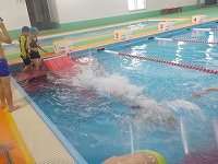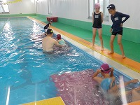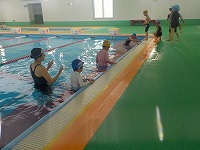 水慣れ、バタ足など、子どもたちがやってみようと思わせる場づくりなので、子どもたちは集中して取り組んでいました。