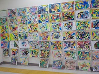 みんなで同じ場所に掲示することにより、友達の工夫している点にも気づきます。これからの作品作りの参考にしていくようにしっかり鑑賞してください。