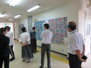 『とき西っ子図工展』とともに授業の様子を参観していただき、「制約も多く、先の見えにくい中で、今だからこそ得られるものを」と励ましのお言葉とともに、「子どもたちが落ち着いて学習活動に取り組めていますね。」、「どの教室も整理整頓がされていますね。」、「どの学年も(『とき西っ子図工展』の)作品に、子どもたちの個性が表れていますね。」と子どもたちの頑張りを見出していただきました。