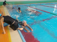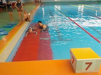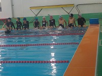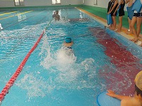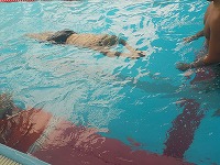 スイミングのバス2台に乗り込み四日市スイミングに向かいました。3つのグループに分かれて指導を受けました。今日のメニューは、浮くことでした。それぞれのコースでスイミングの先生にコツを教えていただき、様子が少しずつ変わってきました。