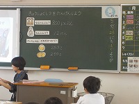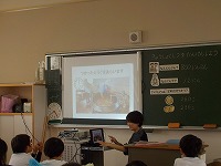 栄養教諭が食育の授業に取り組みました。子どもたちが楽しみにしている給食を給食室でどのように作業しているのか写真でみせてもらいました。子どもたちは大きな鍋にびっくり、そして約800人の給食を12人の調理員さんで作っていることに大変な仕事をしてもらっていることを感じたようです。