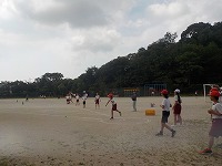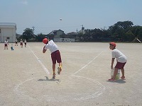 全国の5年生が体力テストに取り組んでいます。暑さ指数で運動中止が続き、なかなか実施できなかったのですが、運動場でソフトボール投げ、50m走に取り組んでいました。遠くまで投げられるように子どもたち同士でアドバイスし合いながら投げていました。
