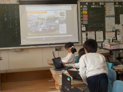 国語の説明文で船の造りや特徴を学習しました。それをいかして働く車についてものりもの図鑑を作成していました。