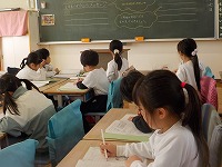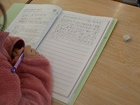 1年生のふりかえりを一生懸命書いていました。また2年生になってからがんばりたいことも記入し、4月からの2年生に胸をふくらませていました。