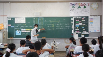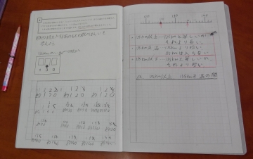 4年生の算数では、四捨五入を使って「およその数の表し方」を考える授業をしています。今日の算数の課題は「学校からUSJまでおよそ130㎞です。では道のりは何㎞から何㎞の範囲にあるでしょう」を考える課題でした。1の位を四捨五入して130になるのは、125~134の範囲、でも124.9や134.9ならどうなるのか考えていました。さらに、今日はそのことから、「以上」や「以下」、「未満」といった新しい算数用語も習いました。子どもたちも算数の世界がどんどん広がり、楽しく学習に取り組むことができました。