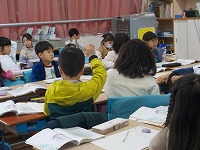 国語の時間、物語文「スイミー」を学習していました。海の底のきれいさなど文章から読み取りながら物語を楽しんで読んでいました。スイミーの知恵や、仲間との協力、海の平和を守る努力などたくさんのことを読み取ってほしいと思います。