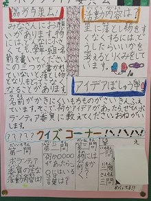児童玄関の掲示板に、委員会活動の紹介ポスターが貼られています。