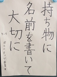 「持ち物には名前を書いてね」