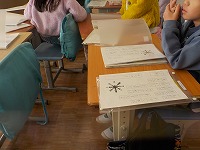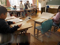 教室の荷物をきれいに片付けていました。プリントを集めて整理していました。