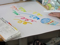 画用紙にクラッカーを描き、そこから線を引き、きれいな色を塗りました。子どもたちはカラフルな色をたくさん使い、きれいな作品がたくさんできました。