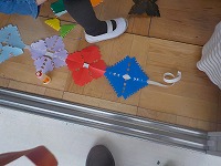 図工の時間、折り紙を折って切って面白い模様を作り飾りを作っていました。折り方を変えると模様も違ってきます。楽しい模様がたくさんでき、子どもたちは見てほしくて声をかけてきました。きれいな模様がみんなできました。どこに飾るのか、楽しみですね。