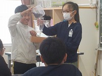 血液がさらさらだとスムーズに流れ、どろどろしているとスムーズに血液が流れないことを大豆とペットボトルを使って実演しました。