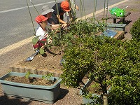 やまびこ学級前の花壇には、野菜を育てています。みんなで今日は世話をしていました。暑くなり、野菜もだんだん大きくなってきています。みんなでおいしくいただけるように育てていってほしいと思います。