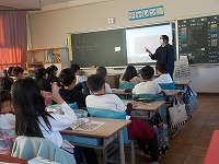 I like~という表現とともに歌を歌いながら楽しく活動しています。楽しく活動しながら英語に親しんでほしいと思います。
