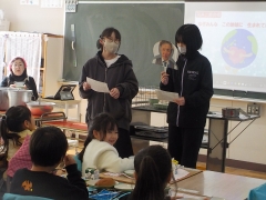 代表委員会の取り組みを給食の時間に各クラスに報告し、「あいさつの意味について考えましょう」と呼び掛けてくれています。