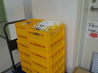 給食終了後には、教室横に置かれた牛乳パックも給食調理員さんによって回収されました。