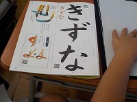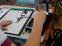 書写の時間半紙を半分に折り半分のスペースに「きずな」と書いていました。字のバランスが難しく苦労していましたが、さすが5年生。練習するうちにバランスよく書けるようになってきました。