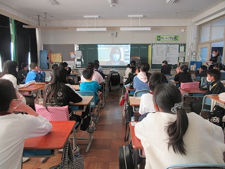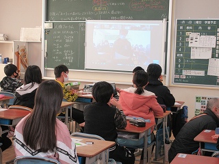 中学1年、小学6年の各クラスをZoomでつないでの開催です。