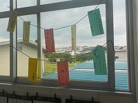 廊下に七夕飾りや短冊の掲示が多くなっています。子どもたちの短冊には、素敵な願いがたくさん書かれています。