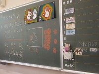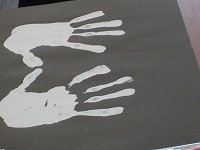 子どもたちは、どうすれば手形が浮き出るのか考えながら色を選びました。子どもたちの手形が素敵な作品となることを期待しています。
