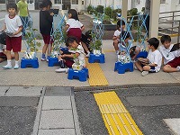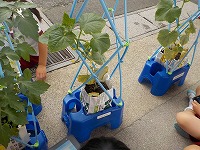 ミニトマトができていたり、ナスの花が少しずつできてきていたり、子どもたちは前の観察と比べて野菜が育っている様子を実感していました。