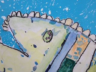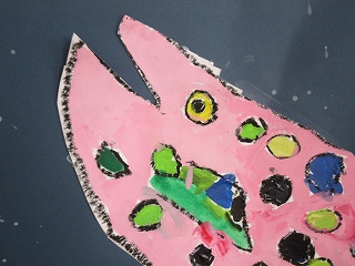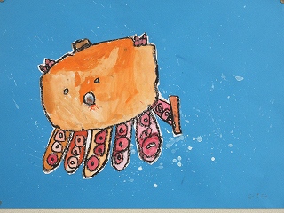 青や紺色をバックに、色とりどりの海の生き物たち。