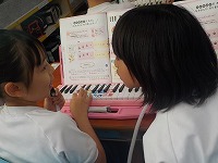 音楽の時間、鍵盤ハーモニカで演奏しながら言葉遊びをしていました。