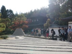 最後の見学地銀閣に到着しました。金閣をイメージしていた子どもたちも多かったようで、銀閣には銀箔がなく子どもたちの予想に反していました。しかし、向月台、銀沙灘がきれいに整っていて、子どもたちにとっては、驚きでした。